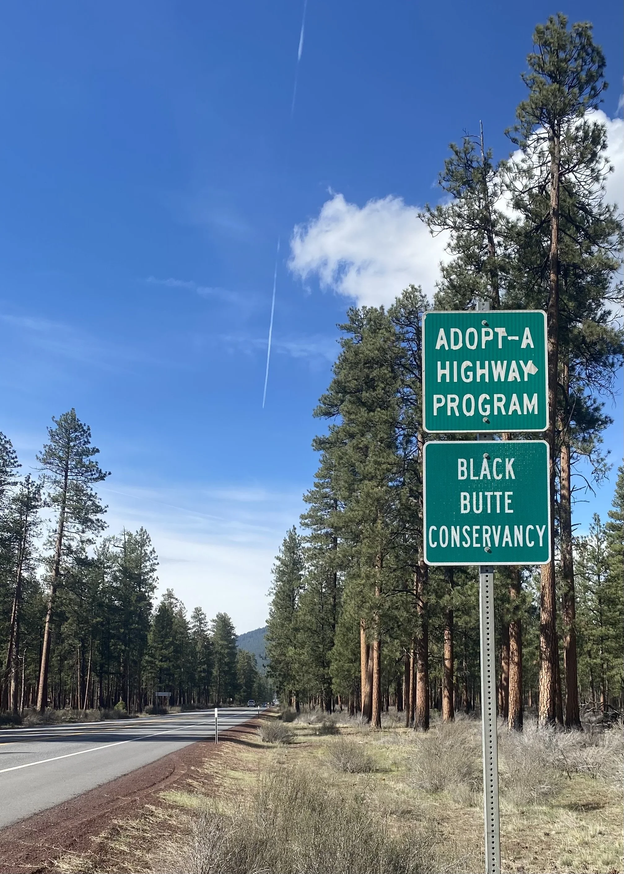 Highway 20 is a major gateway to the Black Butte region and a heavily traveled corridor through wildlife habitat, forests, and open landscapes. Roadside litter accumulates quickly along this route, posing risks to soil and water health and drawing wildlife toward a busy roadway.